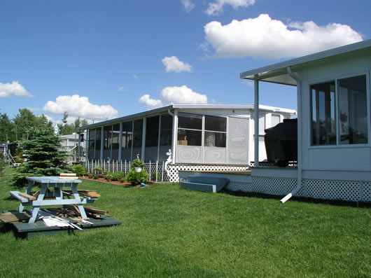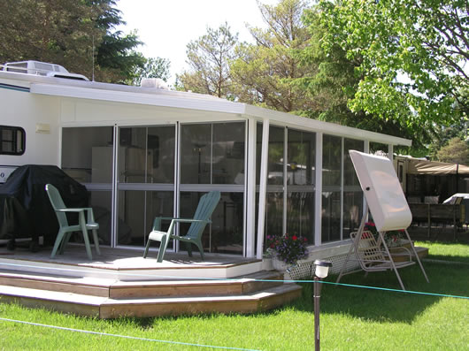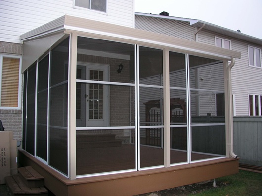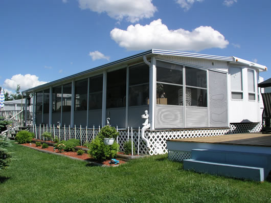 The ADD-A-Room Screen Room, Patio Enclosure is a three-sided room that is installed on a deck or patio and attached to your home, cottage or trailer. The screened room can be purchased with either a soft vinyl roof or an insulated aluminium roof. The Add-A-Room Screen Room, Patio Enclosure provides protection from the sun, rain and bugs and will allow you to obtain greater enjoyment from the outdoors during the summer.
