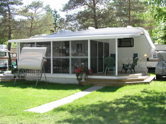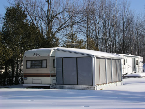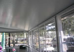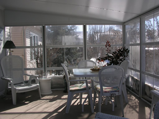 The roof is installed above the screen frames and results in a roof structure which is tight, thus being more resistant to bug entry. The Patio Enclosure may be left up all year round, when installed on a deck or patio that does not move in relation to the home or trailer to which it is attached. The Insulated Aluminium Roof has excellent water or snow run-off and can carry most normal snow loads (typically around 55 pounds per square foot). Since the roof is insulated it will cut down the amount of heat transferred from the roof in the summer time and so the Screen Room, Patio Enclosure will be cooler than with a soft vinyl roof.