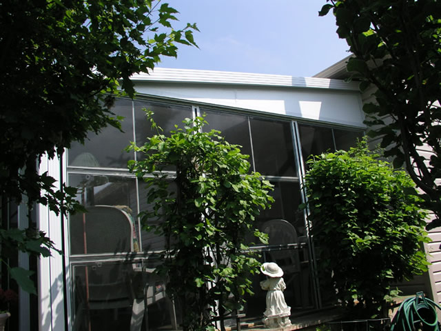 The three sided (Patio Enclosure) patio rooms are available with either a soft vinyl or insulated aluminum roof. The advantage of the insulated aluminum roof is that your patio enclosure can remain up all year around. The roof is insulated and will reduce the amount of the sun's heat transmitted through the roof - thus keeping your screen room cooler on a hot summer's day. An insulated aluminum roof also has superior water run-off compared with a soft roof.