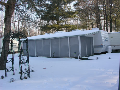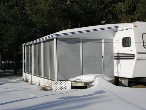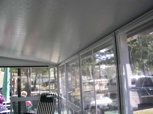 The Insulated Aluminium Hard Roof Conversion Kit uses the current screen frames from most existing hard frame Screen Rooms or Patio Enclosures and results in a new roof structure which is tighter, thus more resistant to bug entry. The Patio Enclosure roof may be left up all year round, when installed on a deck or patio that does not move in relation to the home or trailer to which it is attached.